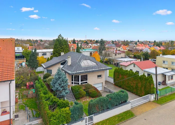 La Black Dragon Haven Luxury Villa With Pool, Sauna & Jacuzzi Praga cuenta con una piscina interior y se encuentra a una distancia de 3 km del Centro Comercial Centrum Cerny Most. Con una terraza, la villa está situada a poco más de 15 minutos en coche de la zona del castillo Čtenice.